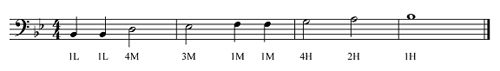 When you identify the notes, you must say them out loud. This musical example would go like this: