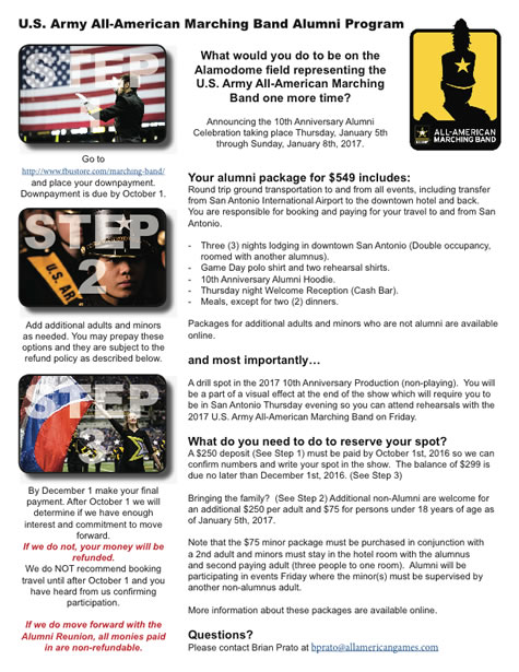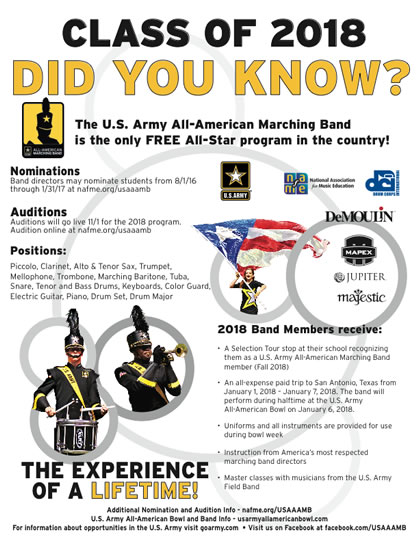 Application for the 2018 U.S. Army All-American Marching Band is now open please see information below to apply.