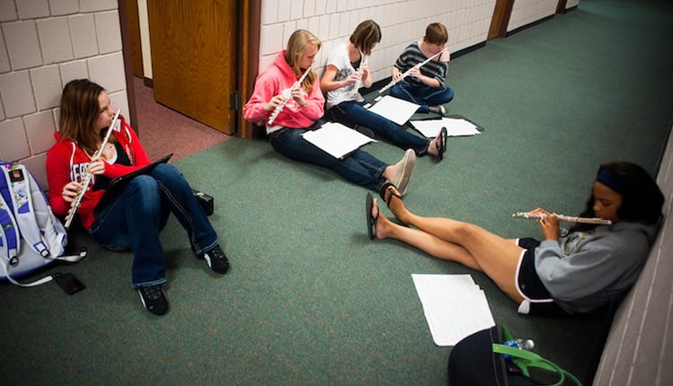 I distinctly remember during my rookie season being somewhat disconcerted to find that the first flutist in the top band, an excellent player by anyone’s standard, never used a music stand when she practiced. Rather, she simply laid her music on her pillow and sat crouched over on her bed reading the music placed, nonchalantly I suspect, on her billowing makeshift stand. Horrified and mystified, I soon made inquiries as to the practice habits of other students and learned all to quickly that few made use of the proper equipment available to them, and that no one had a practice sanctuary in which to escape the trials and tribulations of daily life. Most practiced in bedrooms shared with siblings, some in family rooms with televisions or radios going frill tilt, and others still in the garage, their only escape from the hustle and the bustle of family life. Sadly, some told me they could only practice when family members or were not around as parents, brothers or sisters, and sometimes even pets, objected.