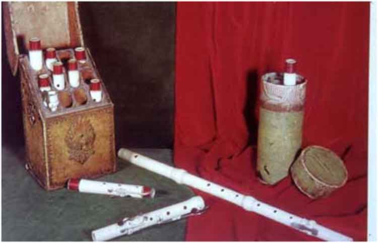 Throughout the 16th century flutes were one of the most popular instruments of the Italian musical scene. This popularity was also echoed in England as was obvious from Henry VIII’s large collection of flutes. These instruments were extremely simple in construction, consisting of a cylindrical tube with a cork stopper in one end, a blow hole and six finger holes. Their range was limited, as they were constructed in different sizes in order to handle the complete range of the music being performed.