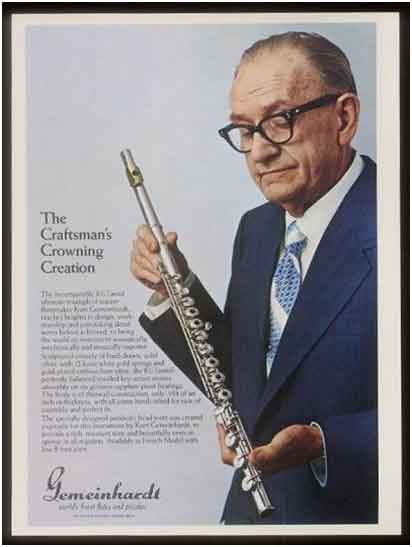 Arthur Gemeinhardt (Kurt’s father) trained under Emil Rittershausen in Berlin. Mr. Rittershausen was a Boehm flute specialist who trained under Boehm and his partner Carl Mendler Sr. in Munich. So, the tradition and origin of the Gemeinhardt flute can be traced directly to the 19th century and Theobald Boehm’s factory.