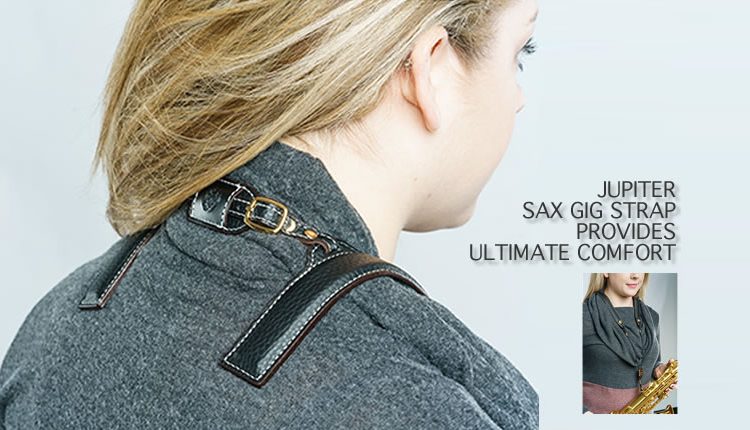 KHS America announces the release of the new Jupiter Sax Gig Strap JCM-SXNS01.  This over-the-shoulders strap is constructed of leather and suede giving it the durability and comfort necessary for those long gigs or for players on the marching field.  Multiple adjustment points allow the perfect fit every time.  The convenient design also allows the player to put it on and remove with ease!